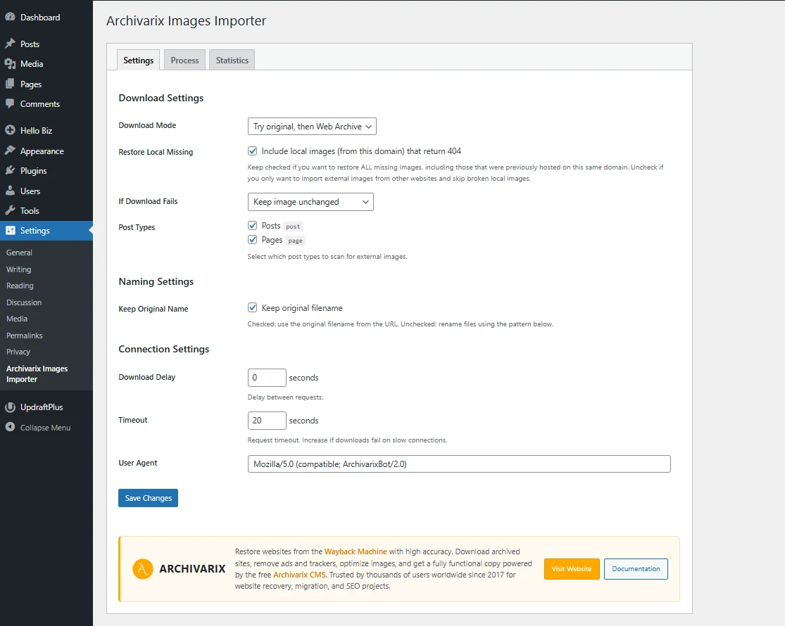 If the extracted content has some images, their links will be contained in the article file. To import them into your Wordpress site you need to use our Archivarix External Images Importer plugin. The plugin is very simple. Read here to find out how it works.